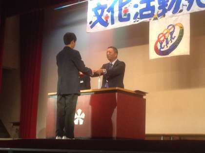 表彰式の様子です。生活体験文、ベスト指揮者賞、合唱コンクールの表彰です。