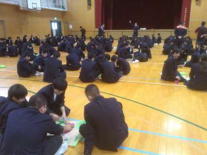 11月21日、6限目に全学年で避難訓練を実施しました。1年生は消火訓練、2年生はAEDの実施訓練、3年生は煙体験を北消防署のご協力で行いました。生徒たちも積極的に参加し、今後の地域防災リーダーとして成長してくれることが大いに期待できますね。