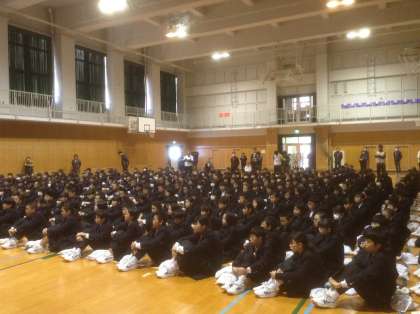 2月20日、体育館で全校集会を行いました。2年生の集合が最も早かったです。いつも8時23分から集会が始まることに感心しています。校長先生からは、3年生は1か月を切った卒業式に向けて、チーム22期生のまとまりを、1、2年生にはチーム1年1組からチーム2年4組として学級のまとまりを確認してくださいとお願いしました。その後、ある新聞の記事を紹介して『いじめ』についてお話がありました。人を助けるの人である。だから、困ったときは周りの人の力を借りよう、そして、本校の教育目標の1つである「思いやり」を大切にしよう。思いやりとは、他の人の立場を尊重し、親切にし、いたわり、励ますことですねと説明がありました。最後に、「人権感覚」ってなんですかという詩を2年生の学年代表委員長がみんなの前で朗読しました。天満中学校を温かい学校にしましょうと締めくくりました。