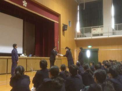 『生きる』の絵はがきの後は、釜石東中の生徒5人が「絶望に向かい、希望を拾う」と題した写真も紹介されました。大事なことは、一人じゃない、必ず誰かが傍にいることですね。あと一週間で新2年、新3年に進級します。平成29年度天満中の物語を入学してくる1年生とともに、最高のストーリーに描いていきましょう。保護者、地域の皆様、この一年間、ご支援ご協力をいただきありがとうございました。これからも、天満中応援団としてさらなるご支援をよろしくお願いします。