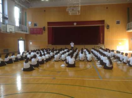 6月1日、1年生は自然体験学習の代休後の登校です。朝の学年集会では、室内オリンピックの表彰がありその後、先生から「できないとか、絶対無理という言葉をなくそう。必ずできるという意識を持とう」とある映像を見ながらお話がありました。2年生の学年集会では「意識をすることで行動が変わる」3年生でも同じことが話されていました。修学旅行を控え、個人個人の行動に責任を持つようにと。