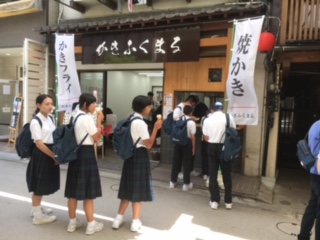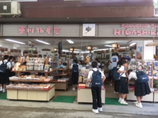 厳島神社を散策。色々なお店で、お土産を購入中。