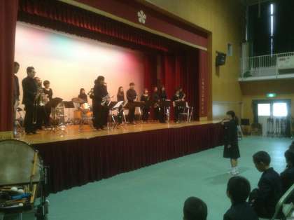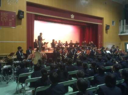 10月28日 本日の午前中は昨日の続きで展示見学を行い、午後からは体育館で芸術鑑賞として、ウインドカンパニー管楽オーケストラの演奏を鑑賞しました。素晴らしい演奏、指揮者体験、本校の吹奏楽部とのコラボ演奏など、あっという間の90分でした。本物に触れることは、想像・創造力を高めることになりますね。