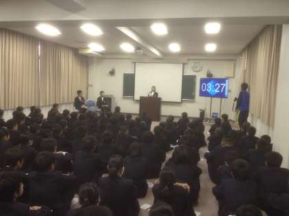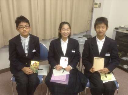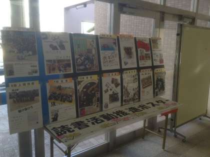 11月16日、1年生のビブリオバトルが多目的室で行われました。各クラス代表者は1組米村くん、2組吉山さん、3組大南くんです。5分間で自分が薦める本の紹介をしました。中々、興味を引くような話しぶりでした。すばらしかった!また、玄関ホールには「読書活動推進ポスター」も掲示しています。各部活動からのお薦めの本を写真付きで紹介しています。内容もユニークですよ。みなさんも、この秋の読書活動で夢の扉を開けませんか。