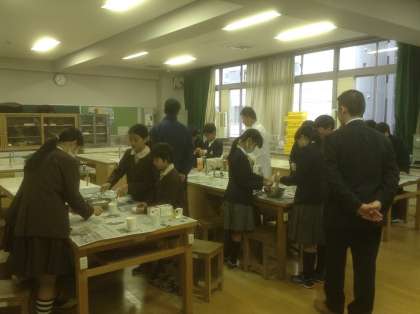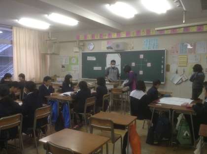 11月29日、期末テストの期間を活用して、西天満、菅北、扇町小学校の6年生を迎えて、中学校の授業を体験していただきました。講座は、国語、社会、数学、理科、英語、音楽、家庭、体育の8コースです。最初に、格技室で生徒会から中学校の紹介があり、続いて部活動紹介ビデオを見た後に、授業体験を行いました。