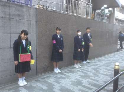 12月12日から15日まで、生徒会主催のあいさつ運動及び赤い羽根募金活動を展開しています。朝の寒い中、生徒議会のメンバーが頑張っています。あいさつは大阪一、笑顔のある学校大阪一を目指して色々な事にチャレンジしてくれています。天満中の一日は、元気な挨拶から始まりますね。