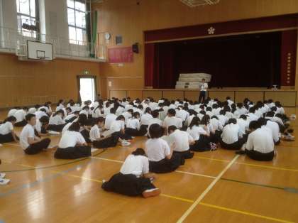 5月18日、3年生は5限目、体育館で「修学旅行のしおり」の読み合わせをしました。各係の役割分担や行程などの確認。しかし、修学旅行前に中間テストがあります。今年度は、進路決定を行う大事な年です。何事も最初が大切ですよ。