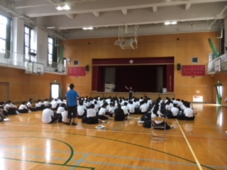 5月28日 6限 三年生は体育館で、明日から始まる修学旅行の直前指導を行いました。しおりを使って最終確認です。いよいよ明日から楽しみな修学旅行がスタートします。