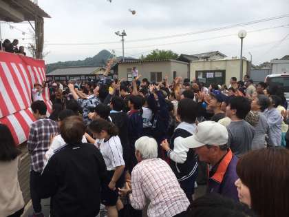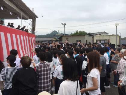 お祝いごととして、紅白のお餅、文房具などが振舞われました。生徒たちは大喜びです。