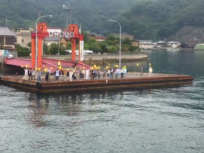 木江港を出港しました。民泊でお世話になった方々がお見送りに来てくれました。ありがとうございました。