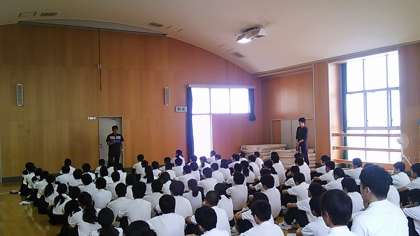 6月12日(木)、各学年とも定例の学年集会を行いました。特に、3年生は来週17日からの修学旅行に向けて、2年生は明日13日の取り組みに向けての確認を行いました。1年生は、入学後初めての中間テストを終えたことを振り返って、「日々のコツコツした取り組みが必要。『継続は力なり』だ」という学年の先生からの話がありました。