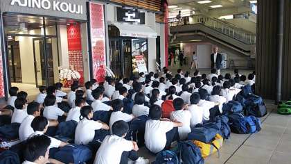 6月17日(火)〜19日(木)、2泊3日の日程で、3年生が熊本・鹿児島方面へ修学旅行に出発しました。新大阪駅での出発式の後、予定通り8:11発の新幹線に乗車しました。予報ではあまり現地の天候がよくないようですが、午後には天候が回復して、予定通り球磨川でのラフティングができることを願います。