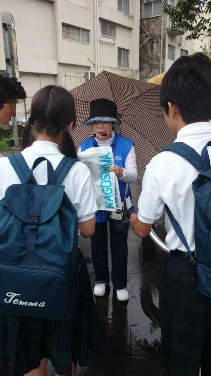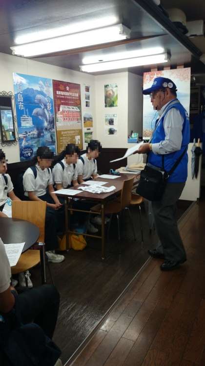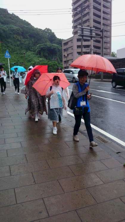 7:45、予定通り宿舎をバスで出発し、9時過ぎに鹿児島市内に到着し、フィールドワークを開始しました。残念ながら雨天の中ですが、生徒たちはボランティアのガイドさんの説明に懸命に耳を傾けていました。各班、6〜7人ずつ、18班に分かれ、薩摩藩や明治維新等にまつわる史跡、寺社、博物館・資料館などをまわったり、桜島フェリーに乗ったりして、鹿児島の歴史と文化を体感していました。