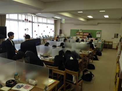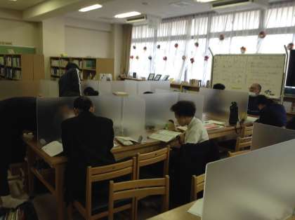 11月12日から3年生の進路懇談が始まっています。これらの日の午後の時間を活用して図書館で、希望者約30名が自主勉強しています。受験に向けて勉強に対するエンジンを全開にしています。大事なことは自ら学ぶ姿勢ですね。頑張れ3年生!