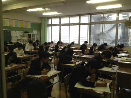 12月4日、本日は3年生の第4回実力テストでした。いよいよ、自己の進路決定に関するデータが準備されることになります。来週から始まる三者懇談では、いよいよ志望校の決定まで話し合われます。それまでに自分の考えをしっかりまとめておきましょう。