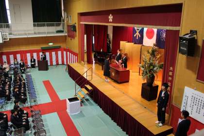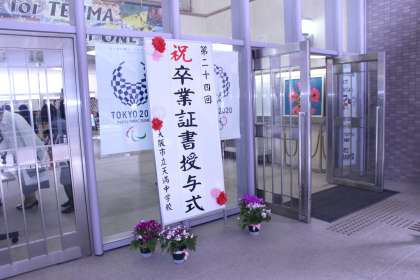 3月14日、少し肌寒さを感じますが、この晴天の中、24期生の卒業証書授与式が挙行されました。146名の卒業生が、一人一人卒業証書を授与しました。校長先生からおめでとうの言葉に「ありがとうございます」としっかりと返答していました。答辞では、この24期生の取り組みや学年カラーをしっかり表現し、会場全体からは感動の涙が溢れていました。卒業の歌「カントリーロード」は本当に素晴らしかった。24期生の前途に栄光あれ!ご来賓の皆様、保護者の皆様いつも本校にご支援ご協力いただきありがとうございます。また、PTA役員、実行委員の皆様、卒業式での様々なお手伝いありがとうございました。