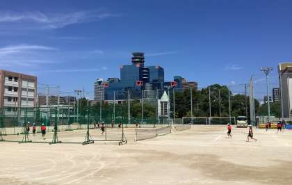 本日も暑い中、グランドではテニス部が元気に活動をしています。休息と水分補給をこまめにとり、熱中症の予防を徹底しましょう。