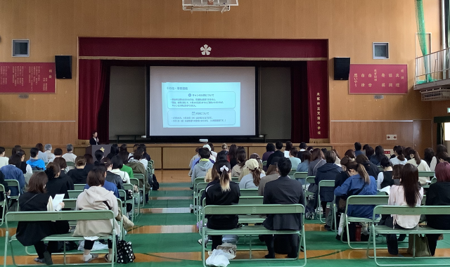 本日、1年生の生徒と保護者に向けて説明会が行われました。仲間づくりを目的に生徒たちが集団生活のルールやマナーを学ぶ機会となるようさまざまな取組を用意しています。当日まで限られた時間のなかでしっかりと準備し、より充実した行事となることを期待しています。保護者の皆様も雨の降るなか、多数お越しいただきありがとうございました。生徒たちにとって、よりよい成長の場となるように準備を進めてまいります。ご不明な点は、学校までお問い合わせください。