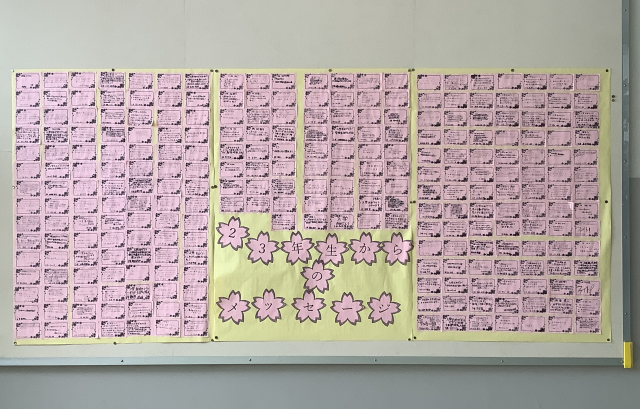 本日1年生は、特別教室やごみ置き場などの場所の確認をしました。これからみんなが快適に学校生活を送っていけるよう気配りも忘れずにしましょう。また、1年生のエレベーターホールの掲示板には、2,3年生からの温かいお祝いメッセージが飾られています。先輩方も見守ってくれています。少しずつ学校生活に慣れていきましょう。