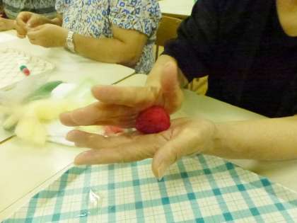 ここまでは、羊毛に慣(な)れるための練習(れんしゅう)です。授業が進んで、作品(さくひん)ができ上がったら、またホームページで紹介(しょうかい)します。