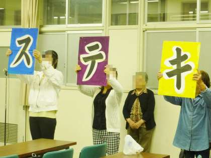 「ス」「テ」「キ」「な」「天」「満」「!」を織(お)り込(こ)んで、本校(ほんこう)の紹介(しょうかい)をします。