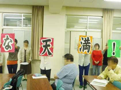 大(おお)きな声(こえ)を合(あ)わせて、天満(てんま)の宣伝(せんでん)をしてきます。