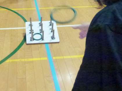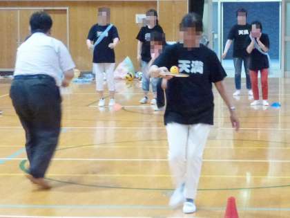 写真(しゃしん)は輪投(わな)げ、借(か)り物(もの)競走(きょうそう)、スプーンリレーです。