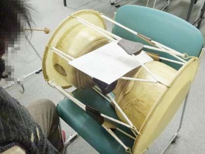 チャンゴは、片手(かたて)ずつ、違(ちが)うばちでたたきますので、慣(な)れないうちはとても難(むずか)しいです。