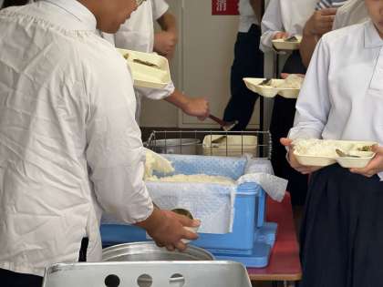 2年1組では配膳の協力体制が見事で、全クラスのなかでもトップクラスのスムーズさだったように感じます。