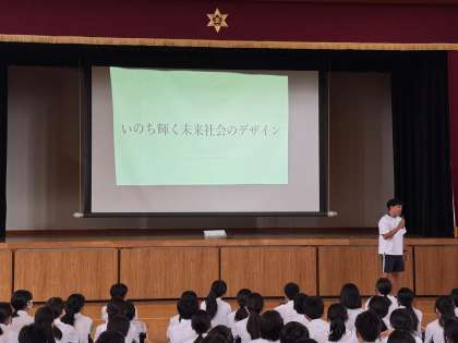 まず3週間前に出かけた大阪・関西万博の校外学習を振り返り、「いのち輝く未来社会のデザイン」というテーマにどんな瞬間が重なったか、問い掛けがありました。