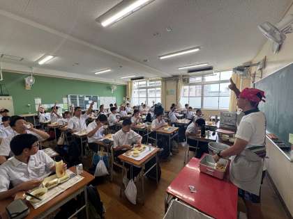 3年4組では追加分をめぐる恒例の“からあげ争奪じゃんけん”が行われ、多くの生徒が参加して盛り上がりました。