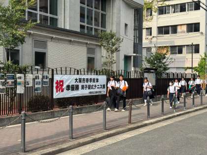 ジメジメとした空気のなかでも、正門では元気なあいさつが飛び交い、一日のスタートを切りました。