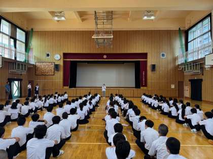 進路に向けた第一歩を踏み出す夏に向けて、3年生の背筋がすっと伸びた集会となりました。