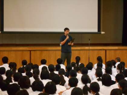 4月当初、明日も来たくなる学校にできるようにしたいという話をした。人と人とのつながりを大切に、自分と同じくらい周りにいる人たちのことも大事にすることで、明日も来たくなる学校が実現できると考えている」というお話がありました。