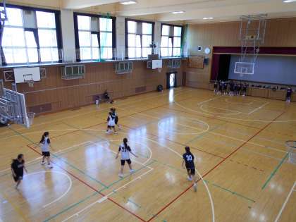 女子バスケットボール部——体育館で本番さながらのスクリメージ(練習試合)を実施。