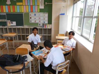 空調の効いた教室で、それぞれの課題に取り組み、わからないところは先生に積極的に質問していました。