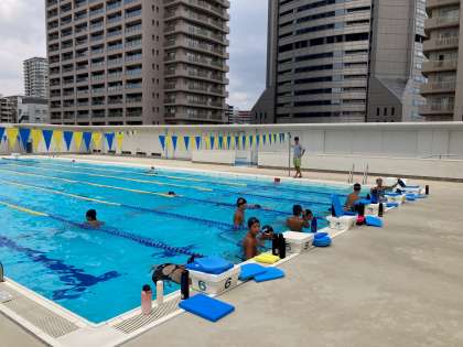 水泳部——顧問3名が見守るなか、きょうもハードなインターバルトレーニングを敢行。水面を切るストローク音とともに、プールサイドに力強い掛け声が響いていました。