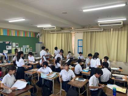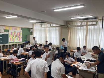 どのクラスも後方からの提出で宿題を手際よく回収しながらも、教室は和やかな空気に包まれていました。