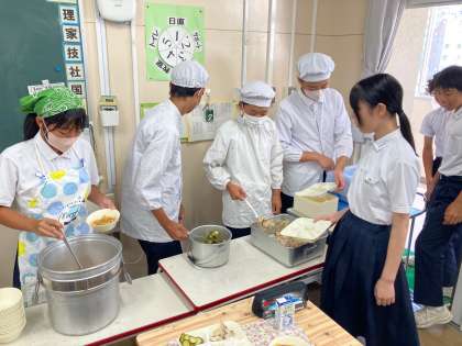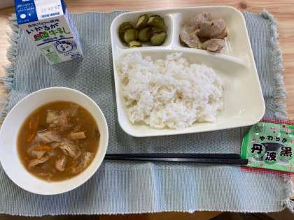 きょうの給食(鶏肉の塩こうじ焼き・さつまいものみそ汁)