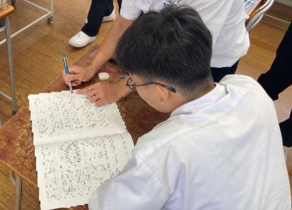 配膳の間にも、生徒たちは先ほど受けた教科の答えを互いに確認し合う姿が見られました。