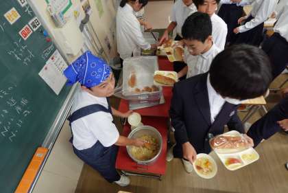 2-1では、みんなそろって「いただきます!」。