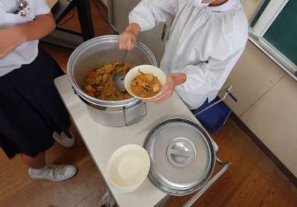 1-2の教室でも、元気よく「いただきます!」の声が響きました。