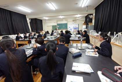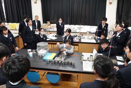 Today we welcomed an advisor from the Osaka City Comprehensive Education Center, who observed an experimental science lesson in 2nd-Year Class 1.