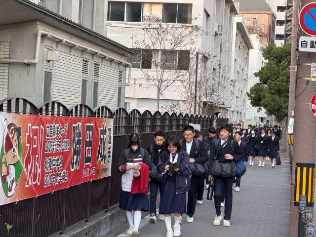 However, there was almost no wind between the buildings today, and students arrived at school cheerfully,