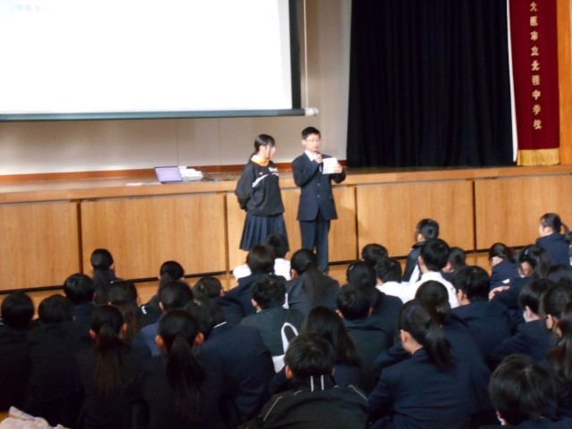 その後、情報委員から著作権についての注意喚起、保健委員からは風邪予防のための換気、委員長会からは考えて動くことの大切さについてそれぞれお話がありました。また、学年主任の先生からは「あと3か月後には後輩ができる。先輩としてふさわしい行動をとることができるようになろう」というお話がありました。