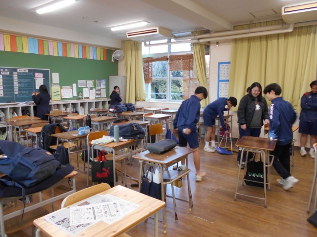 各教室では清掃当番が普段にもまして真剣に掃除に取り組んでいました。扉の桟の砂ぼこりや黒板の溝に残ったチョークなど、日頃見落としがちな部分も丁寧に掃除していました。