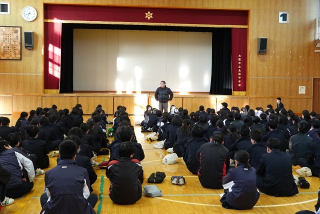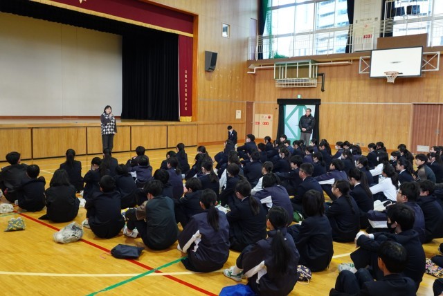 今日は2年生の学年集会があり、担当の先生からお話がありました。