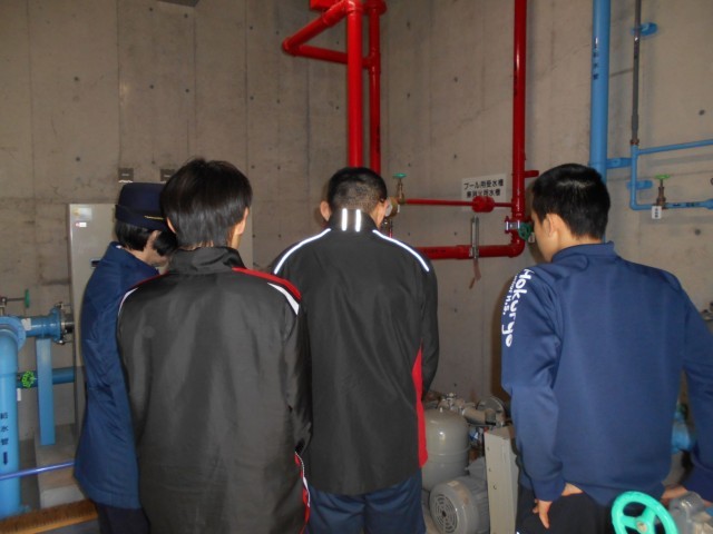 今回の体験では、消防署の方々が本校へ来校され、実際に使用される消防用機材を用いながら、ポンプ等の模擬点検を行いました。生徒たちは、普段目にすることのない機材を前に緊張した様子も見られましたが、説明を真剣に聞き、積極的に取り組む姿が印象的でした。