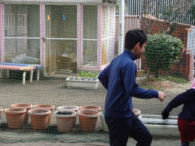 園庭では、鬼ごっこや遊具遊びなどを通して園児と元気いっぱいに遊び、子どもたちの安全に気を配りながら寄り添って活動する姿が見られました。園児の様子をよく見て行動する姿からは、責任感をもって取り組んでいる様子がうかがえました。