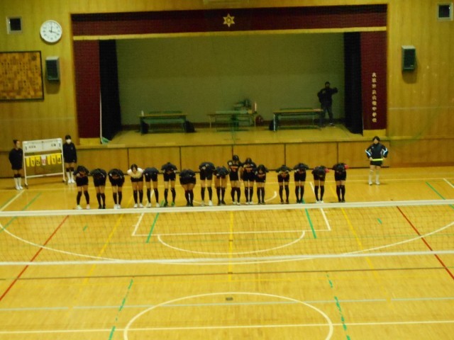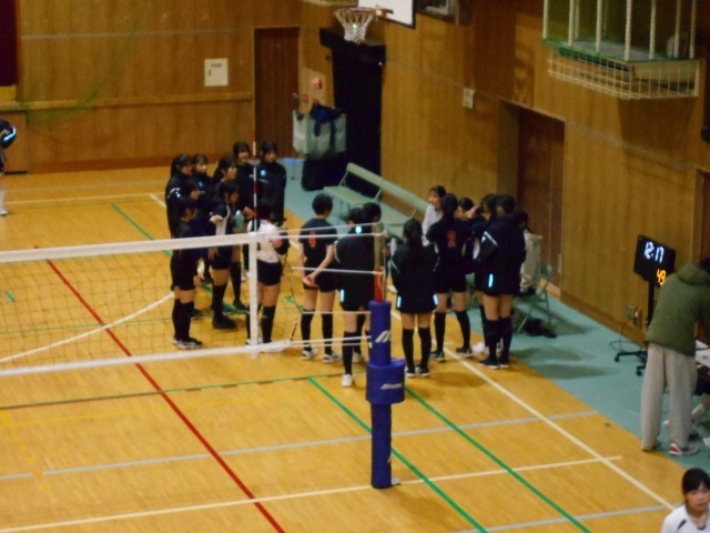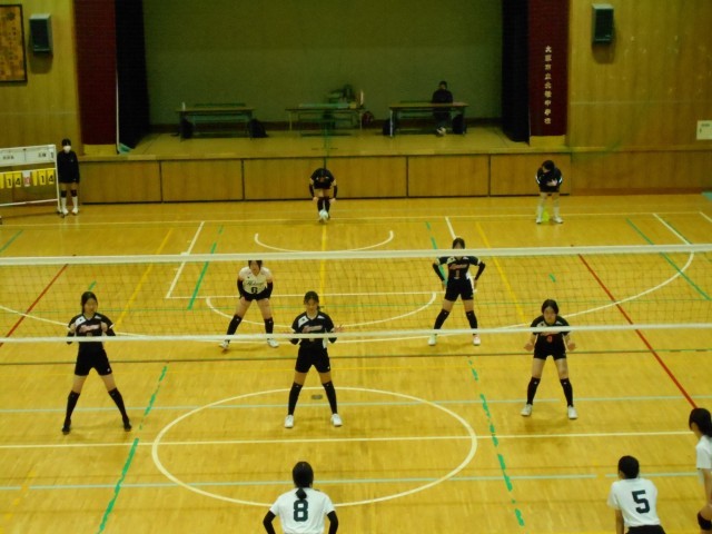 本日、本校体育館にてバレー部のフューチュリティカップが開催されました。写真は本校バレー部が美津島中学校と対戦しているときのものです。